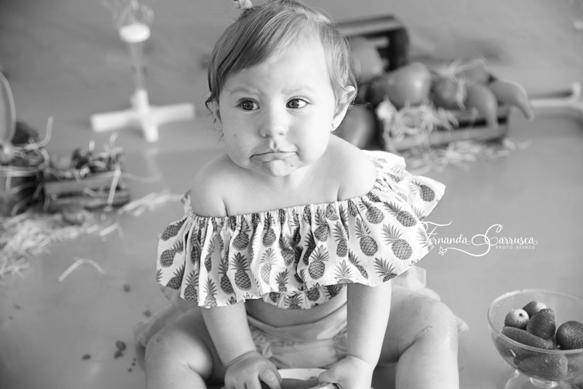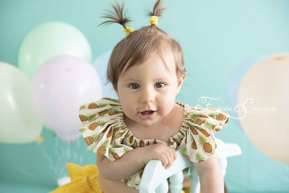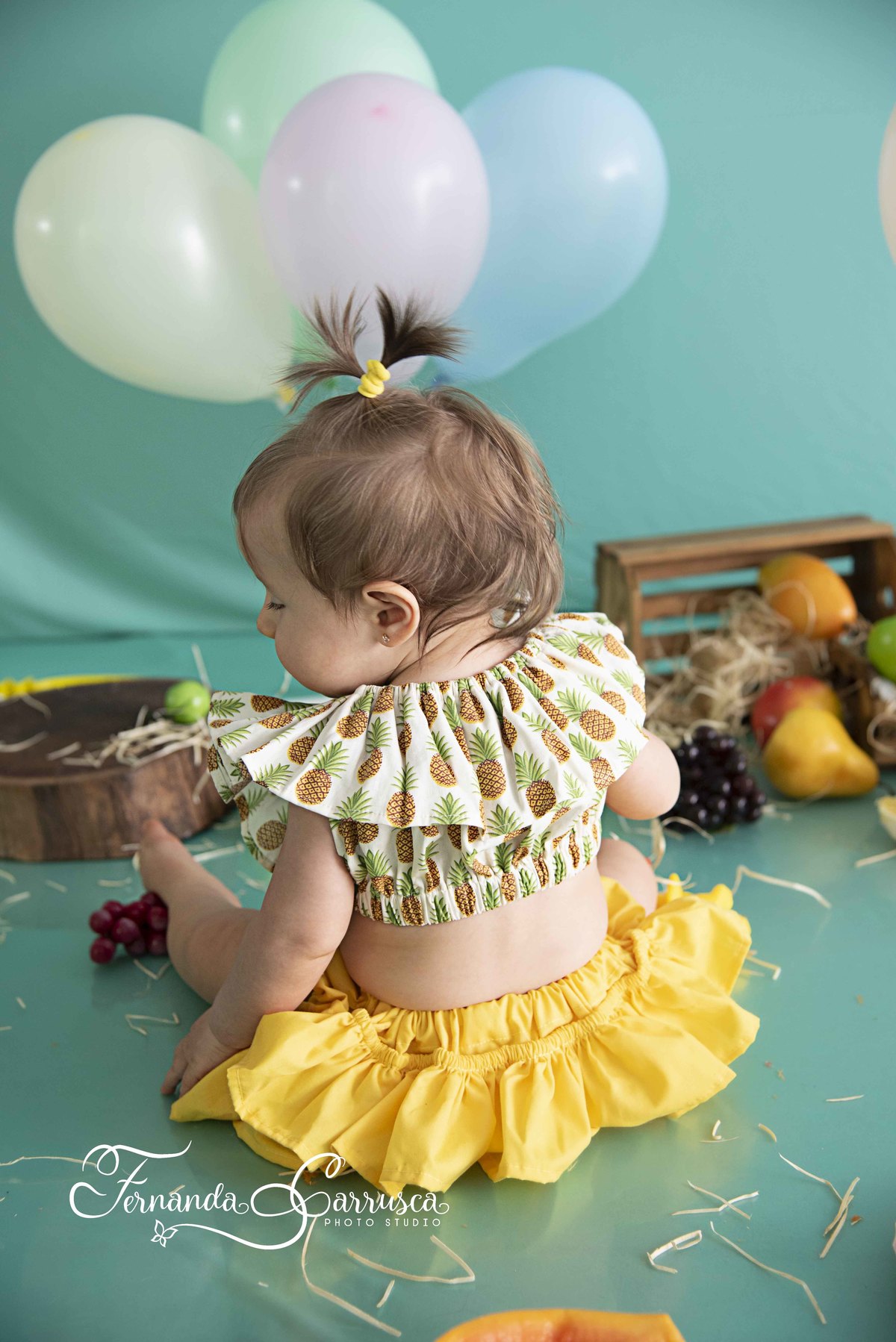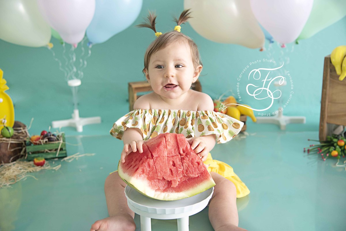 Para registrar o nono mês da Duda, fizemos um smash the fruit pra lá de divertido!!!!